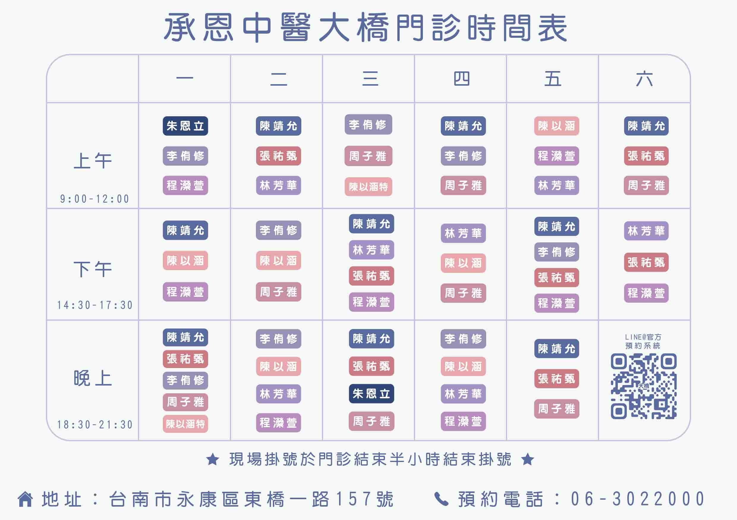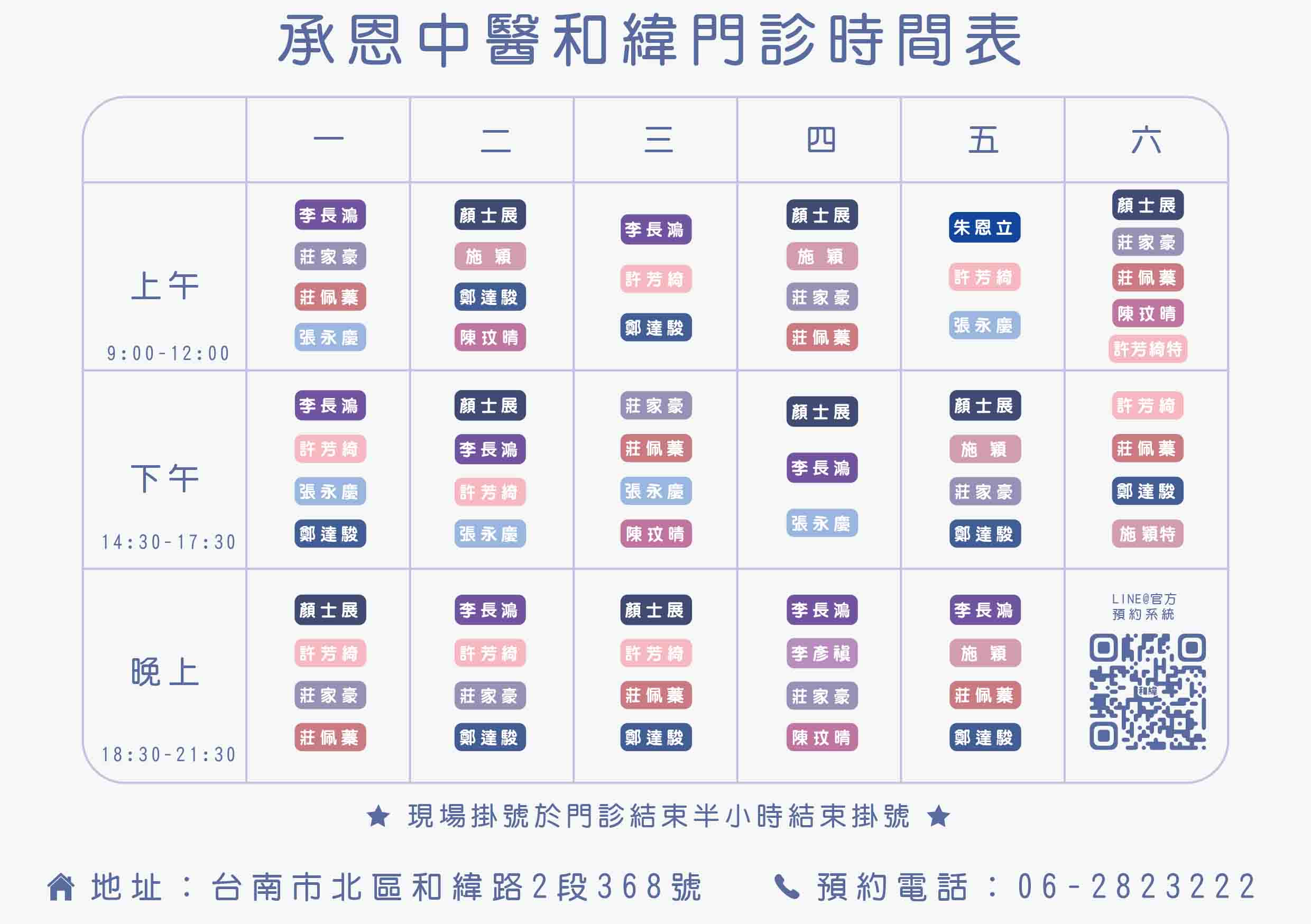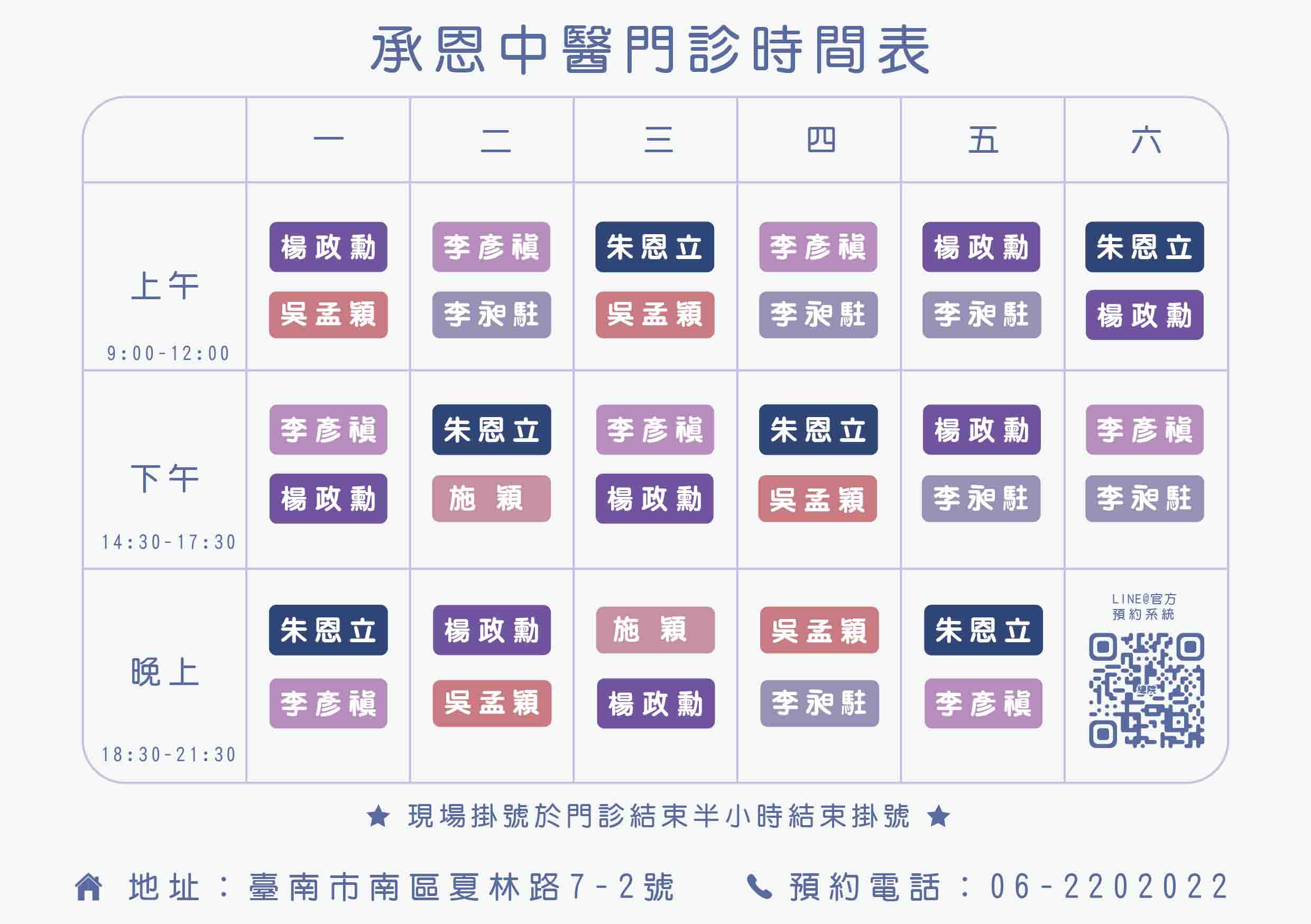 承恩中醫診所 3月起門診表