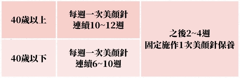 但因為每個人的年齡、膚況、體質差異,針完效果能持續的時間各不相同,為了達到持久效果,一開始的針灸頻率要比較密集。