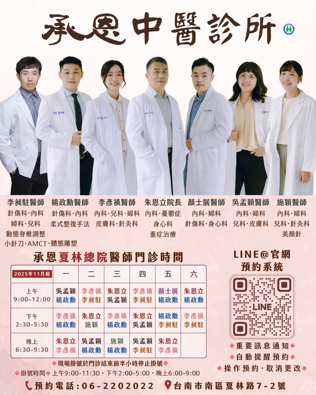 2025年11月起,李昶駐醫師加入承恩為大家服務